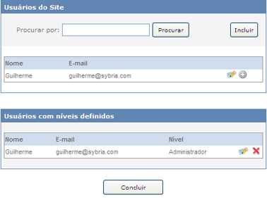 O Arena possui níveis de usuários que definem quem serão os responsáveis pela edição do site.